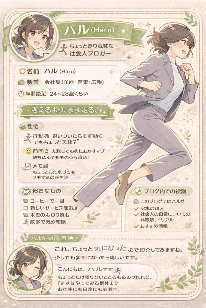この場所では、日々のことや、がんばりたい気持ち、ちょっとした気づきとか…そんな“走りながら考えてる”毎日を、ゆるっと書いていきます。
